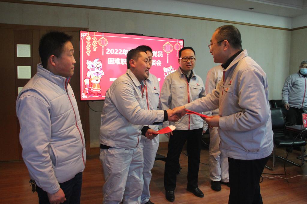 付宗喜向與會困難黨員和困難職工介紹了2021年度公司生產(chǎn)經(jīng)營情況和取得的成績,新的一年企業(yè)面臨的挑戰(zhàn),同時,企業(yè)沒有忘記任何一位生活中暫時存在困難的職工。這深深的鼓舞和激勵了與會人員,他們紛紛發(fā)言交流,表達對公司黨委的感謝之情,并愿意投身企業(yè)建設(shè),在各自崗位上兢兢業(yè)業(yè)、努力工作,盡個人的綿薄之力為企業(yè)發(fā)展做出貢獻難。謝洪濤向與會人員一年來在不同崗位上做出的貢獻表示感謝,并將慰問金送到大家的手中,表達了公司黨委的誠摯問候和新春祝福,鼓勵他們要增強生活信心、努力干好工作;公司黨委是大家堅強的后盾,企業(yè)在穩(wěn)步發(fā)展、我們的生活也會越來越好、每個人都應該自強不息、不懈奮斗,做企業(yè)高質(zhì)量發(fā)展的參與者、見證者。