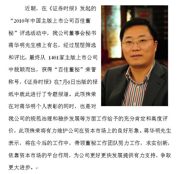 我公司董事會秘書蔣華明先生獲得“百佳董秘”榮譽稱號