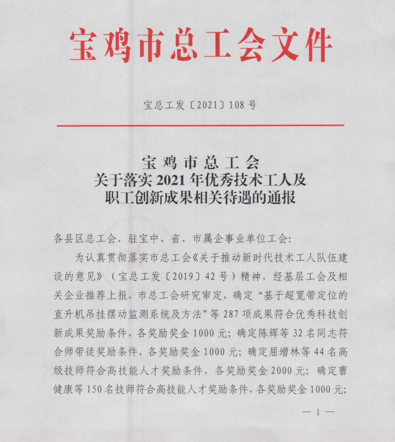 近日,從寶雞市總工會(huì)傳來(lái)喜訊,寶光股份9項(xiàng)職工科技創(chuàng)新成果榮獲“寶雞市優(yōu)秀科技創(chuàng)新成果獎(jiǎng)”。