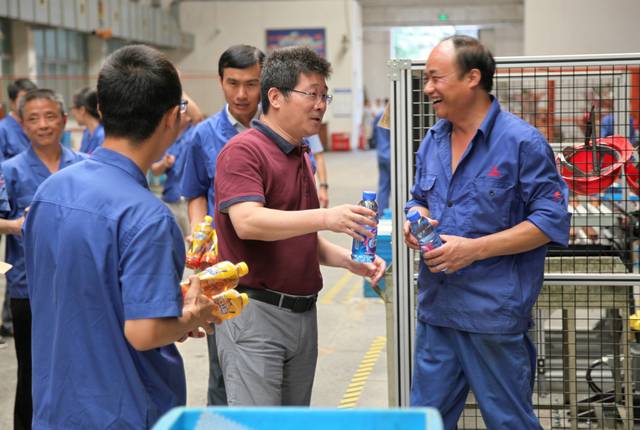 在生產(chǎn)一線,領(lǐng)導(dǎo)們?yōu)橐痪€員工遞上一瓶瓶清涼飲料,并關(guān)切的說(shuō):“你們辛苦了,注意安全”。一瓶瓶飲料,一句句暖心的話,體現(xiàn)著公司黨政工對(duì)員工的關(guān)愛(ài),同時(shí)也激發(fā)了員工戰(zhàn)高溫、促生產(chǎn)、保訂單信心和決心。